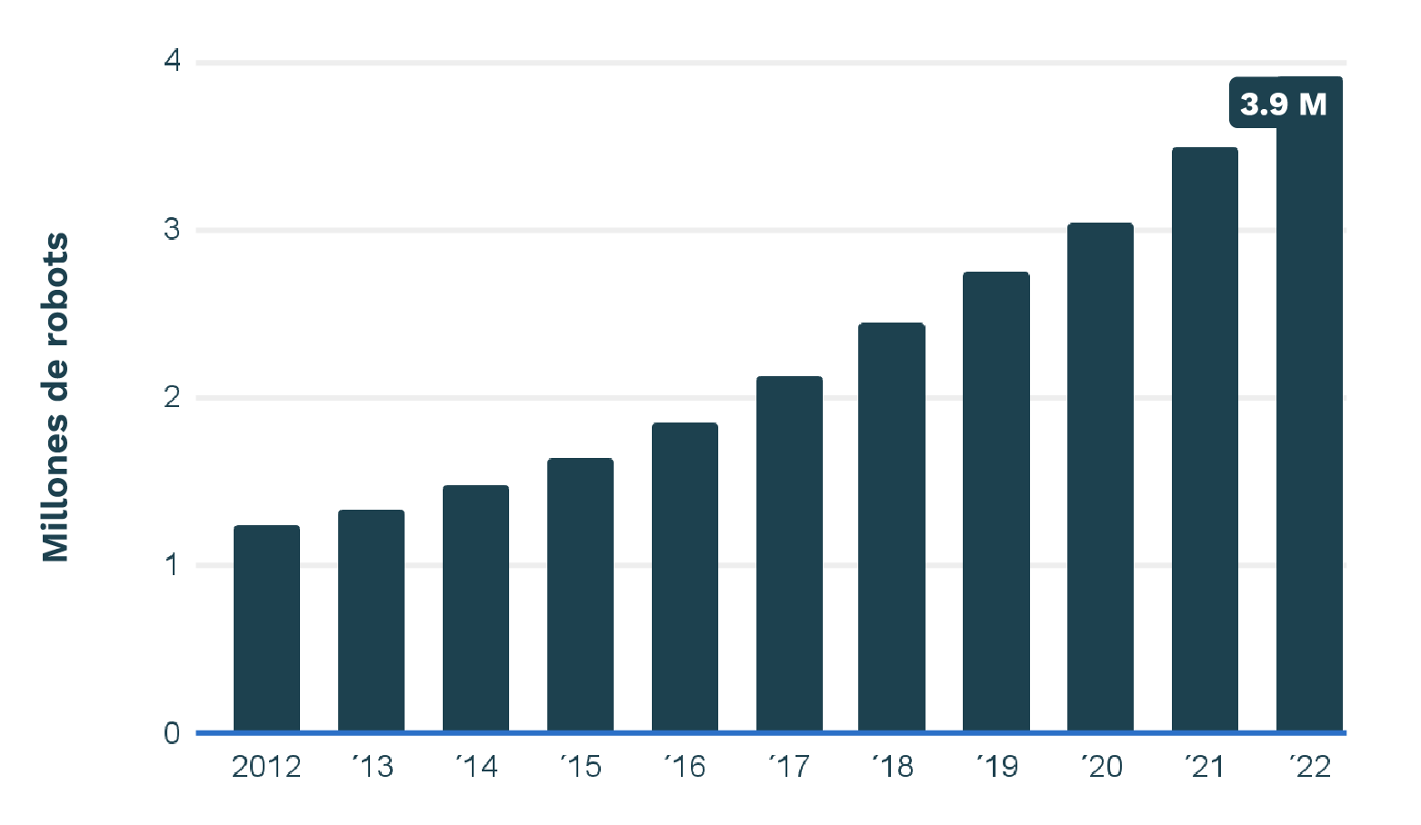 En la última década, el inventario operativo de robots industriales se ha triplicado, con casi cuatro millones de robots en uso en diversas industrias para finales de 2022