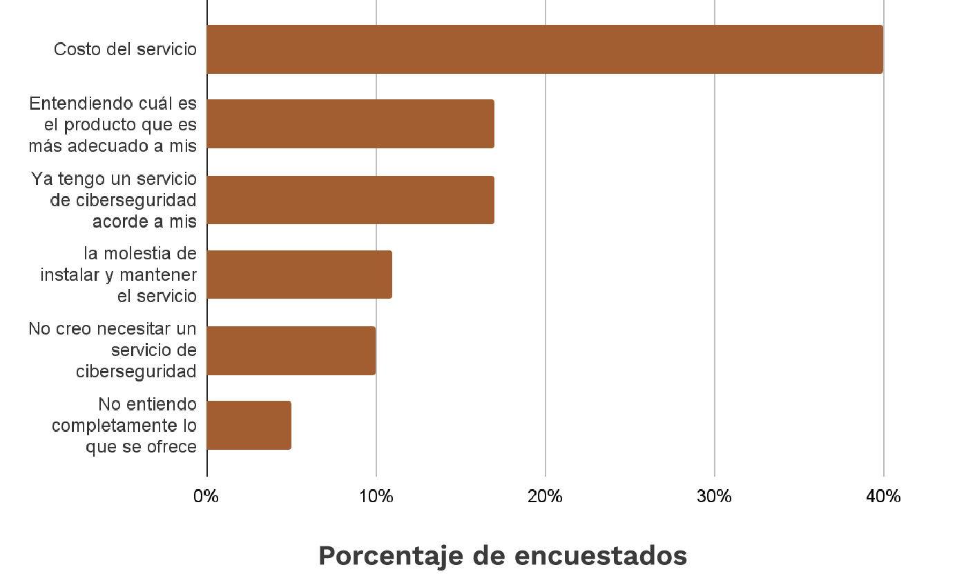 A partir de una encuesta realizada 1.131 personas, la principal barrera asociada a la contratación de productos asociados a la ciberseguridad sigue siendo el costo del servicio